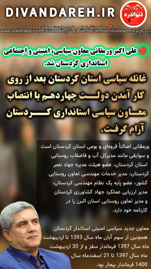 علی اکبر ورمقانی معاون سیاسی، امنیتی و اجتماعی استانداری کردستان شد.