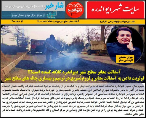 ???? شهروندان صبور دیواندره شایسته خدماتی به مراتب بهتر و با کیفیت تر از وضعیت موجود هستند. عیلرغم وقفه های ایجاد شده در آغاز به بکار مجموعه شورای اسلامی دوره ششم بعنوان تصمیم سازان حوزه مدیریت شهری، بلاتکلیف ماندن مصوبه انتخاب شهردار دیواندره تبعات سنگینی در خصوص پایش، برنامه‌ریزی و چشم‌انداز فعالیت ها در فصل عمرانی جدید را قطعا رقم خواهد زد. حال با انتصاب سرپرست جدید و ریسک پذیر شهرداری دیواندره، بهبود شاخص های پسرفت کرده از جمله آسفالت معابر که به مشکلی بزرگ تبدیل گشته یقینا حاصل خواهد شد. رضایت عمومی شهروندان و تعامل مناسب سرپرست جدید شهرداری با کارکنان را می توان به فال نیک گرفت. قطعا باید در مسیری حرکت کنیم که شهروندان ما احساس شیرین شهروندی را تجربه کنند و صرفا کلمه شهروند بودن را در پرداختن هزینه های زندگی در مرکز استان و گاه کلانشهرها و عدم دریافت خدمات در شان تلقی نکنند.