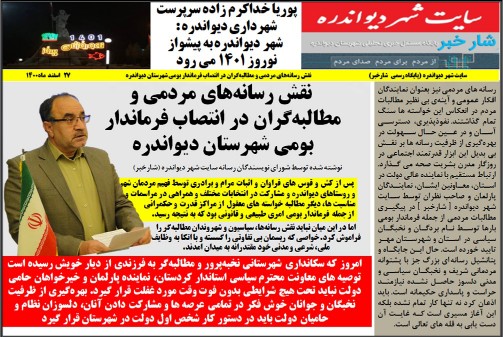 نقش رسانه‌های مردمی و مطالبه‌گران در انتصاب فرماندار بومی شهرستان دیواندره