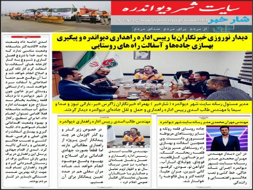 مدیر مسئول رسانه سایت شهر دیواندره ( شارخبر ) بهمراه خبرنگاران زاگرس خبر، بارانی نیوز و صدا و سیما با مهندس طالب اسدی رییس اداره راهداری و حمل و نقل جاده‌ای دیواندره دیدار کردند.